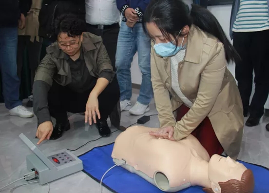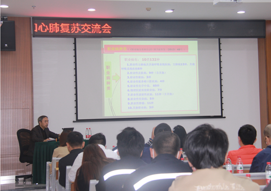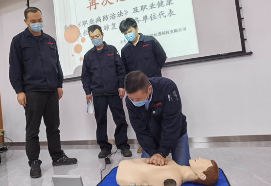 接下來的交流中,惠能標普資深專家唐邦富總工程師(主任醫(yī)師,原重慶市衛(wèi)生監(jiān)督所副所長,從事職業(yè)衛(wèi)生評價工作40余年),主授對用人單位職業(yè)病防治法定責任,及其相關法律法規(guī)的歷年演變,在結合個別重大案例的基礎上做出了精彩的講解;公司職業(yè)病高級評價專家艾國平博士(原第三軍醫(yī)大學預防醫(yī)學系教授、碩士生導師、執(zhí)業(yè)醫(yī)師、美國南加州大學洛杉磯兒童醫(yī)院博士后、全軍健康教育專家、中華預防醫(yī)學健康風險評估與控制青年委員會委員、重慶社區(qū)和農(nóng)村衛(wèi)生協(xié)會慢病專委會副主任委員、重慶市院士專家科普團講師、重慶健康研究會理事)通過理論講解、視頻展示以及現(xiàn)場實操等形式,展現(xiàn)了心肺復蘇等應急救援措施,并讓代表親自實操,切實掌握急救技能。