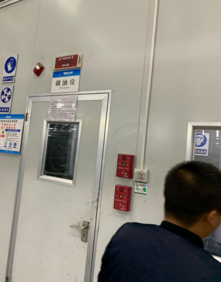 2車間內(nèi)有配電箱無(wú)“當(dāng)心觸電”的警示標(biāo)志。