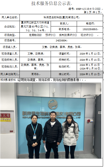 科來(lái)思生物科技(重慶)有限公司定期檢測(cè)項(xiàng)目公示