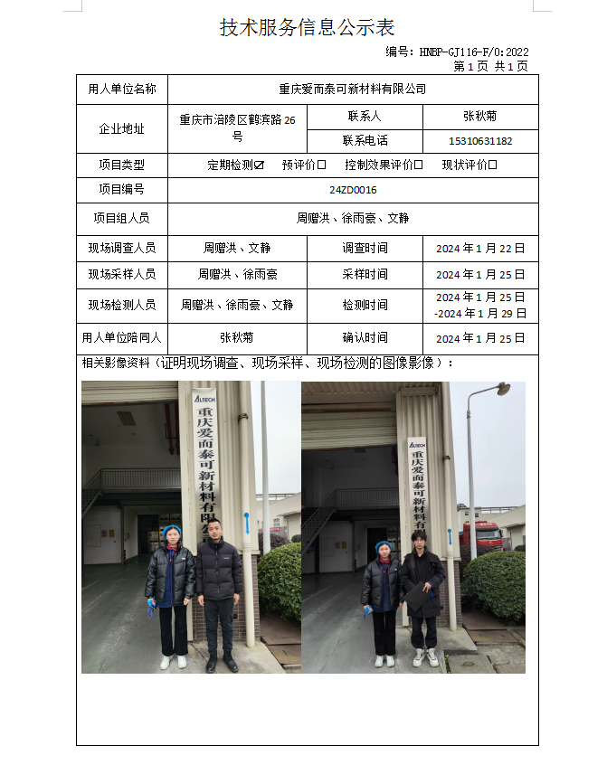 重慶愛而泰可新材料有限公司定期檢測項目公示