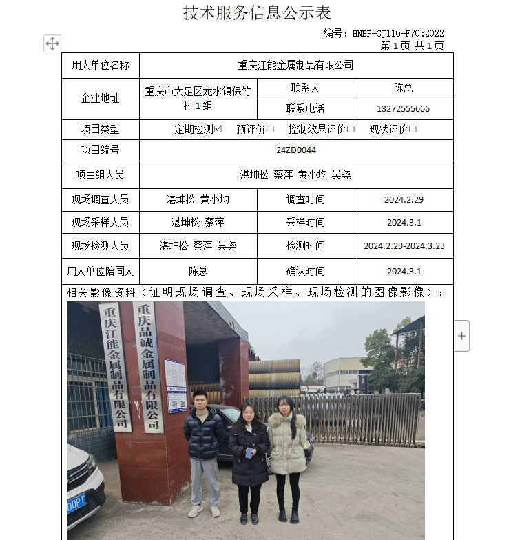 重慶江能金屬制品有限公司項目檢測供水