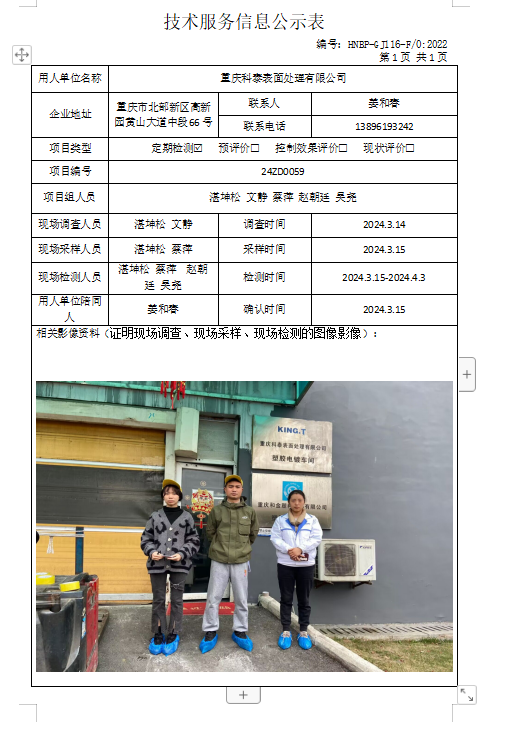 重慶科泰表面處理有限公司定期項(xiàng)目檢測公示