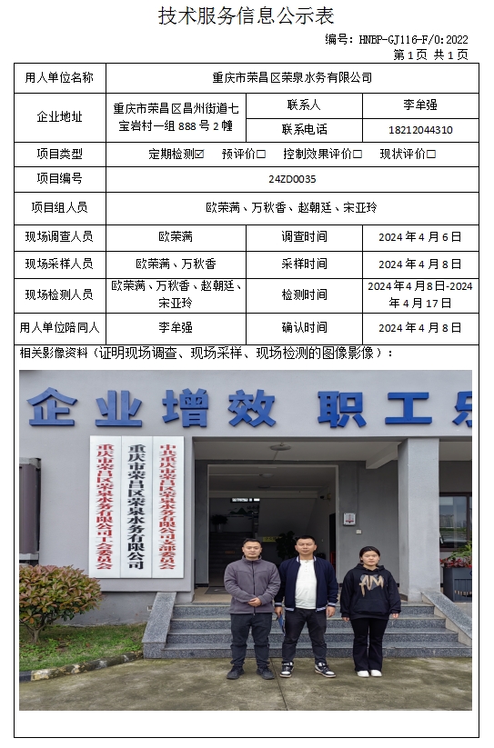 重慶市榮昌區(qū)榮泉水務(wù)有限公司定期檢測項目公示