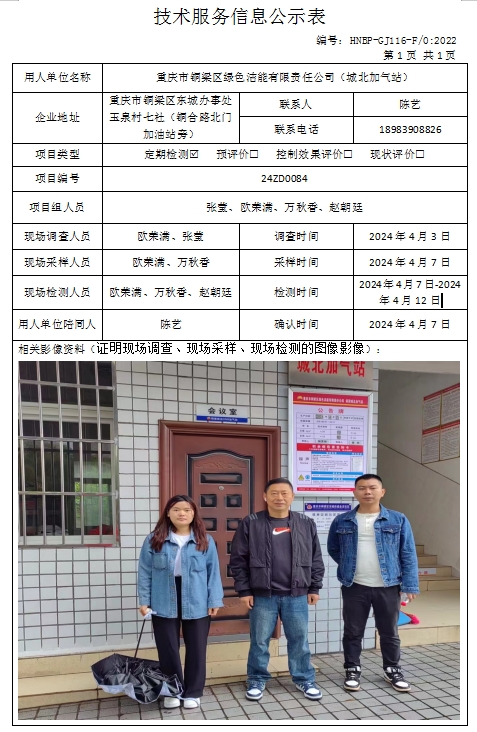 重慶市銅梁區(qū)綠色潔能有限責任公司(城北加氣站)定期檢測項目公示