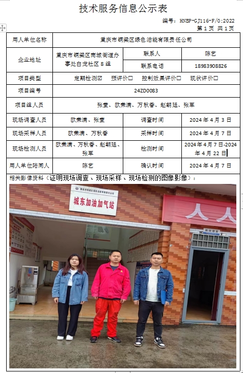 重慶市銅梁區(qū)綠色潔能有限責任公司定期檢測項目公示
