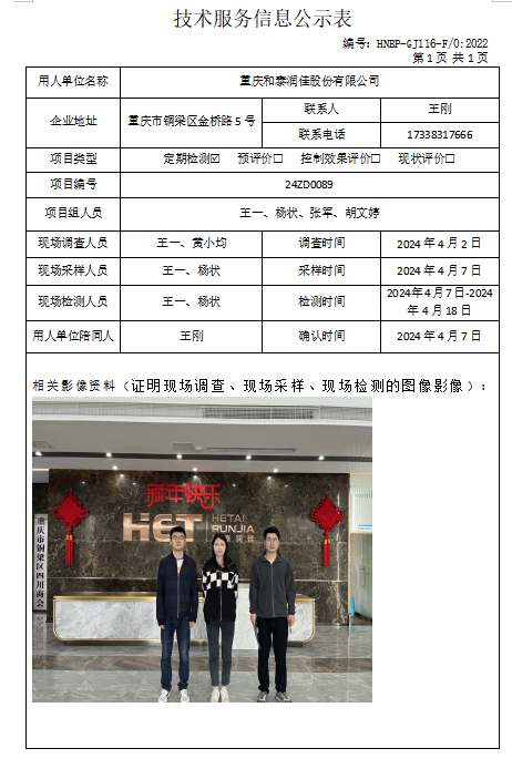重慶普熙汽車配件有限公司定期檢測項目公示...