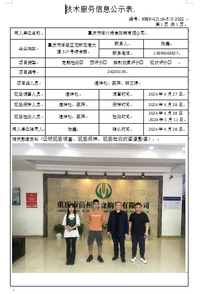 重慶市涪州糧食購銷有限公司定期檢測項目公示