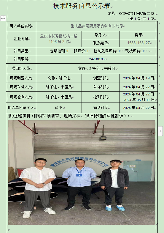 重慶鑫吉泰藥用噴霧泵有限公司定期檢測項目公示