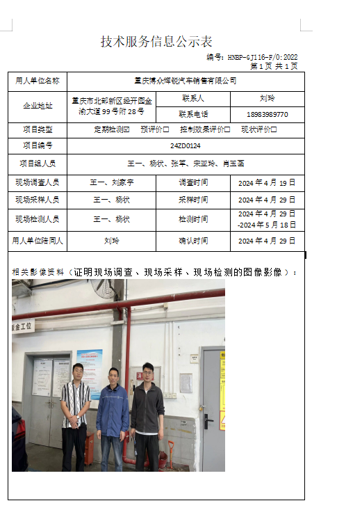 重慶博眾輝銳汽車銷售有限公司項目公示