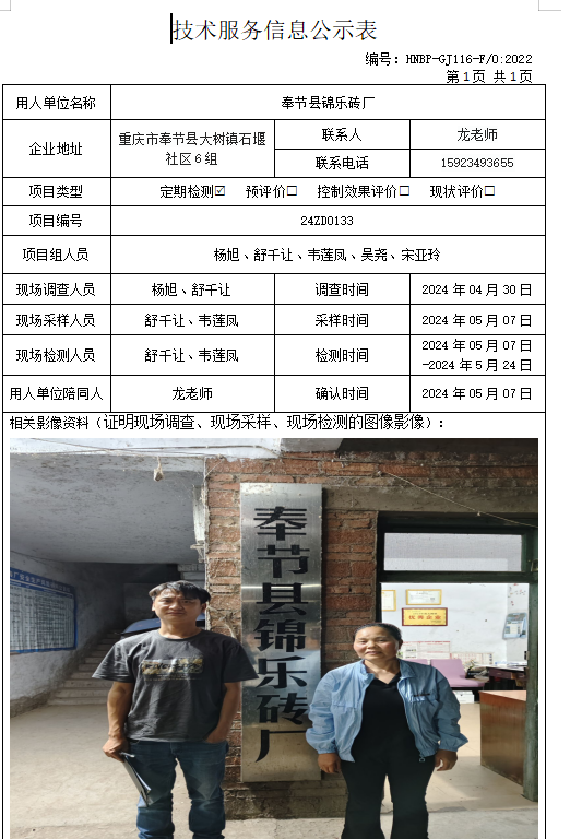 奉節(jié)縣錦樂(lè)磚廠定期檢測(cè)項(xiàng)目公示
