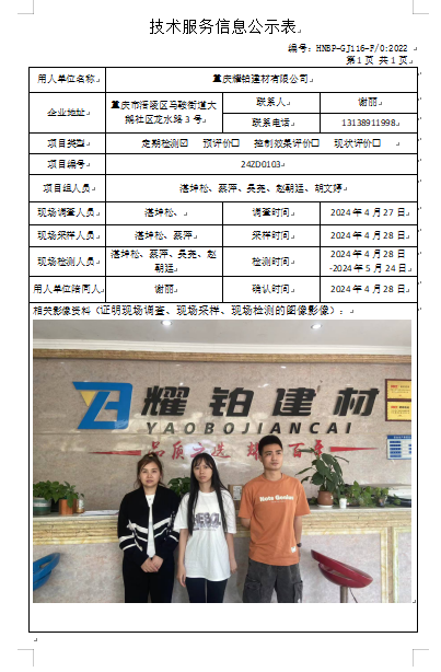 重慶耀鉑建材有限公司定期檢測項(xiàng)目公示