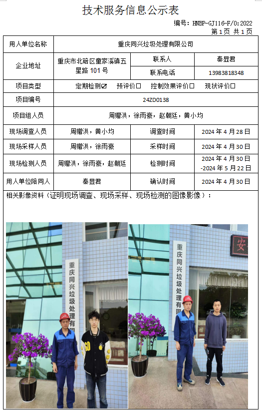 重慶同興垃圾處理有限公司定期檢測(cè)項(xiàng)目公示