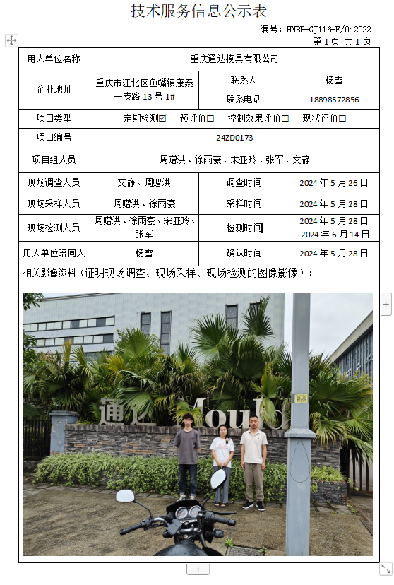 重慶通達(dá)模具有限公司定期檢測項目公示