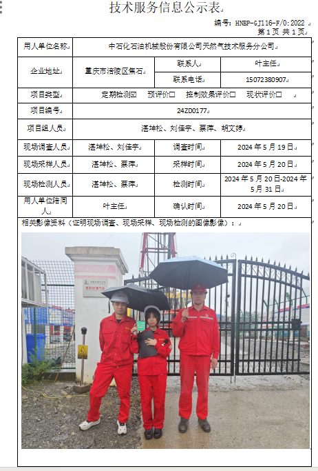 中石化石油機械股份有限公司天然氣技術服務分公司定期檢測項目公司