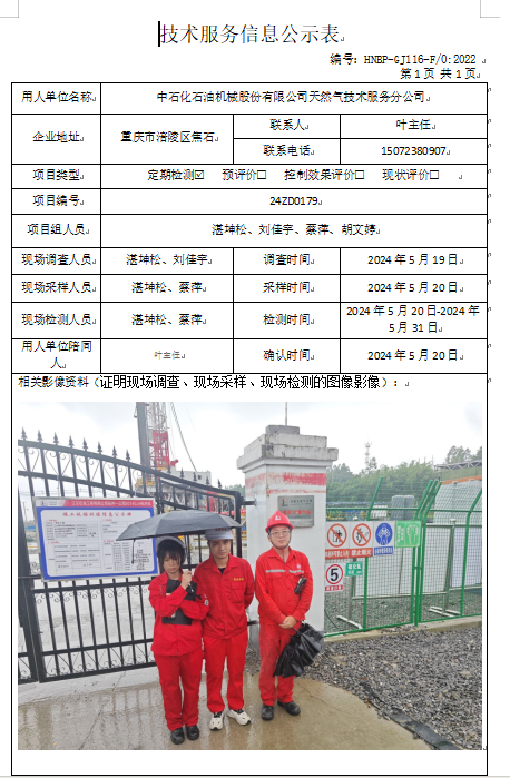中石化石油機械股份有限公司天然氣技術(shù)服務(wù)分公司定期檢測項目公司