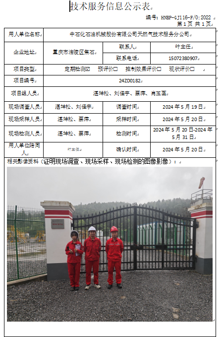 中石化石油機(jī)械股份有限公司天然氣技術(shù)服務(wù)分公司定期檢測(cè)項(xiàng)目公司