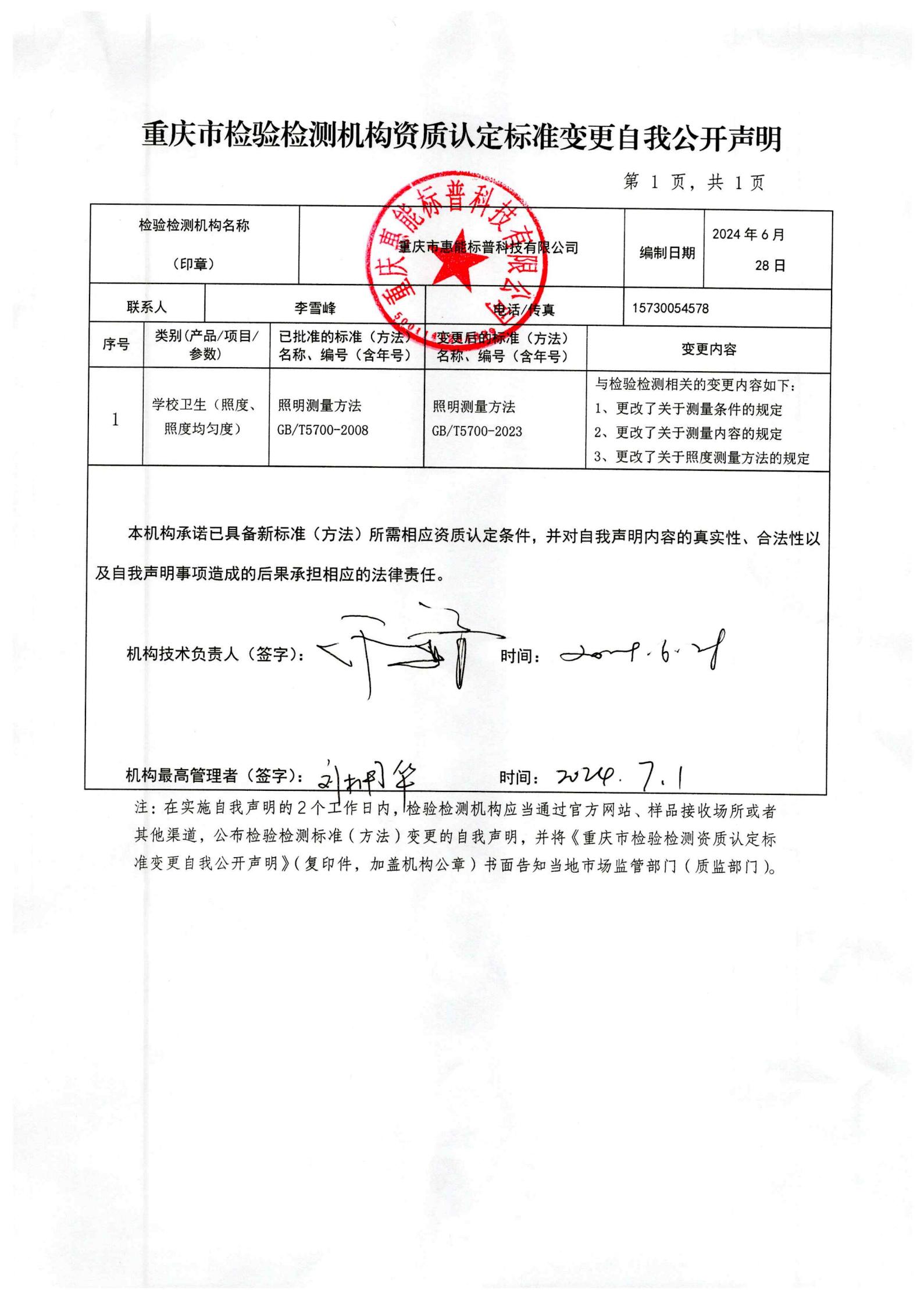 方法變更的自我聲明