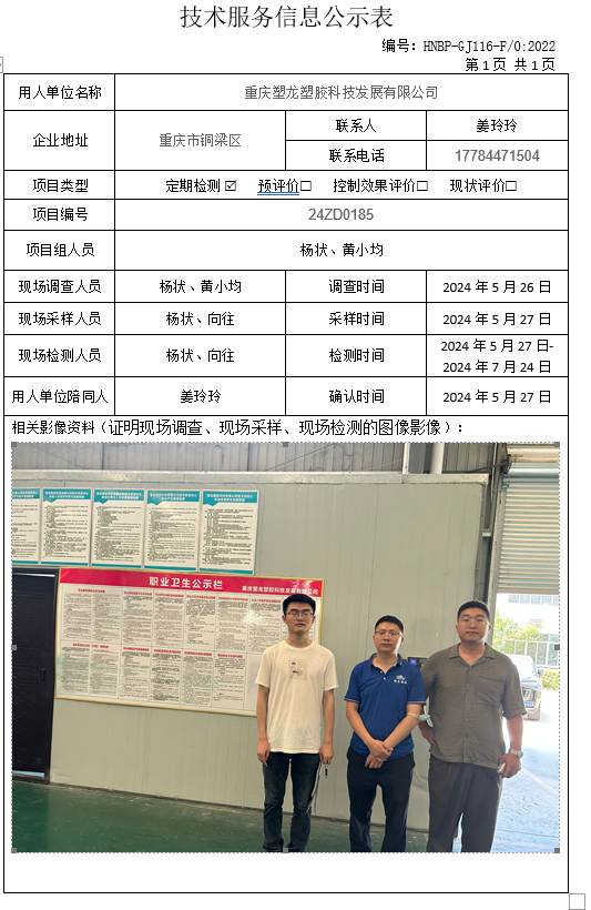 職業(yè)衛(wèi)生評(píng)價(jià)項(xiàng)目公示