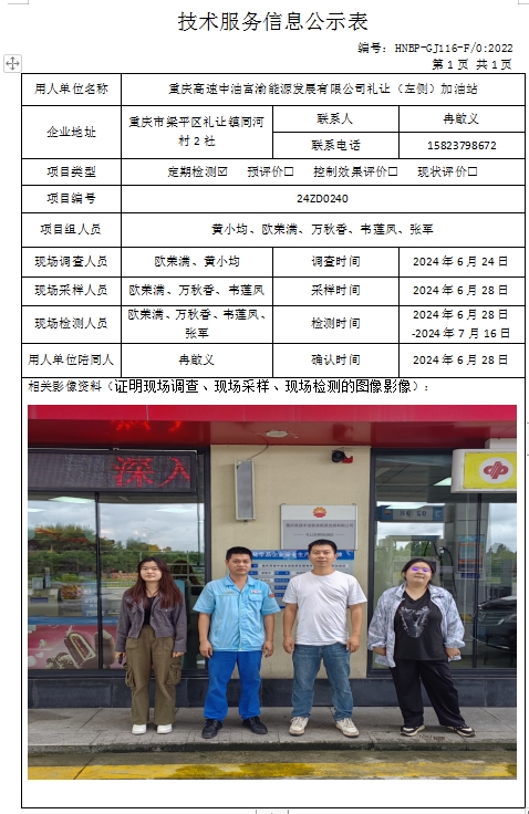 重慶高速中油富渝能源發(fā)展有限公司禮讓(左側(cè))加油站定期檢測項目公示