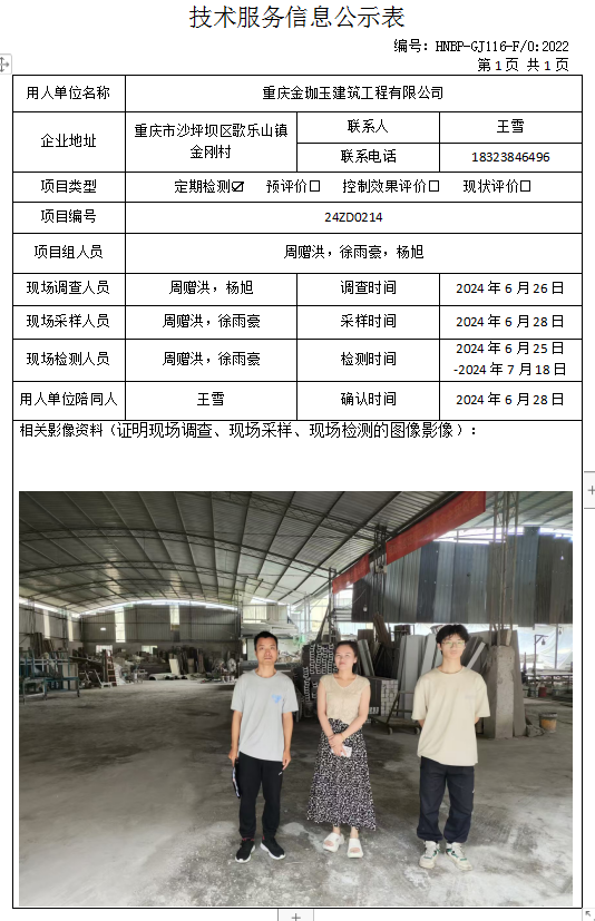 重慶金珈玉建筑工程有限公司定期檢測項目公示