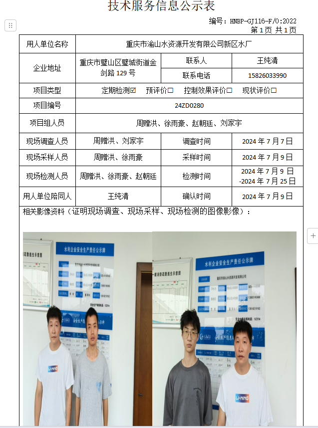 重慶市渝山水資源開(kāi)發(fā)有限公司千層巖水廠定...