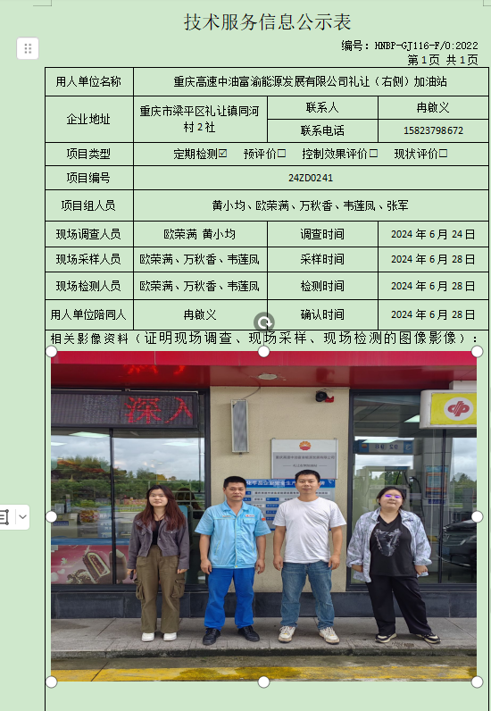 重慶高速中油富渝能源發(fā)展有限公司禮讓(右側(cè))加油站定期檢測項目公示