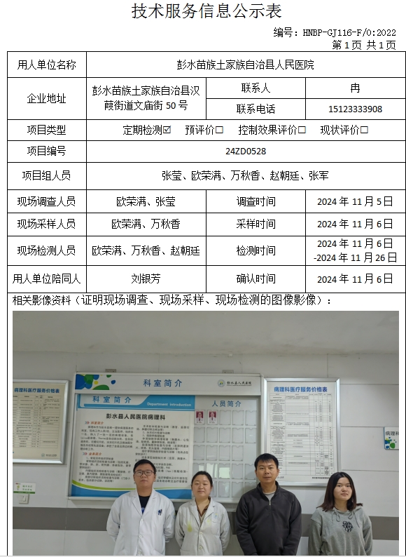 彭水苗族土家族自治縣人民醫(yī)院定期檢測項目公示