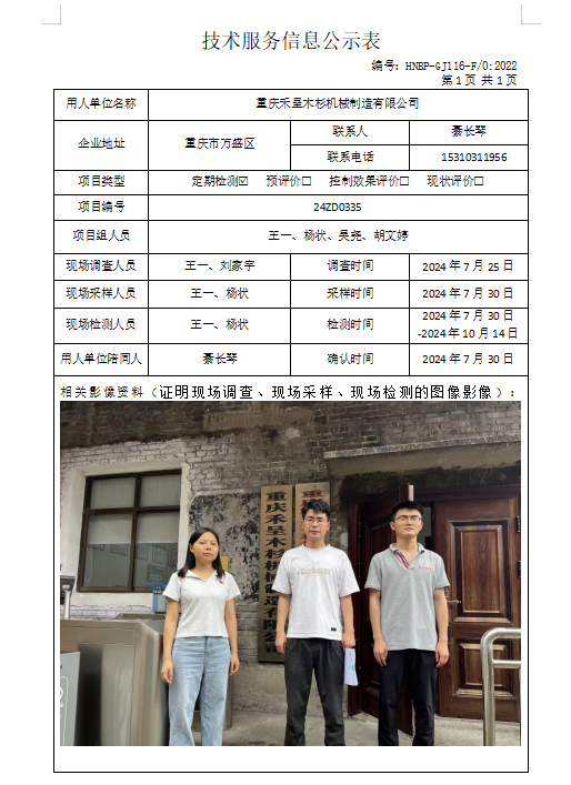 職業(yè)衛(wèi)生評(píng)價(jià)項(xiàng)目公示