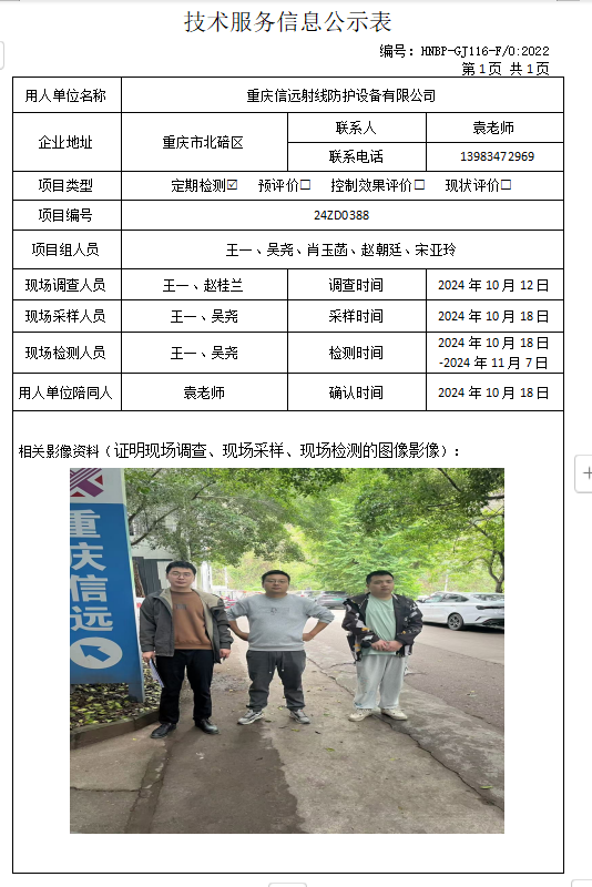 放射衛(wèi)生檢測項目公示