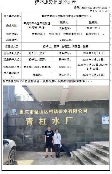 重慶市璧山區(qū)村鎮(zhèn)供水有限公司青杠水廠定期檢測(cè)項(xiàng)目公示