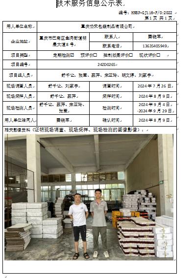 重慶協(xié)禾包裝制品有限公司定期檢測項目公示