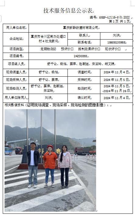 重慶新酢坊建材有限公司定期檢測項目公示