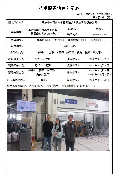 重慶中汽西南汽車服務(wù)連鎖有限公司鈑噴分公司定期檢測項(xiàng)目公示