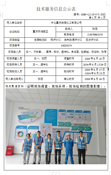 重慶華裕勝久材料科技有限公司定期檢測項目...
