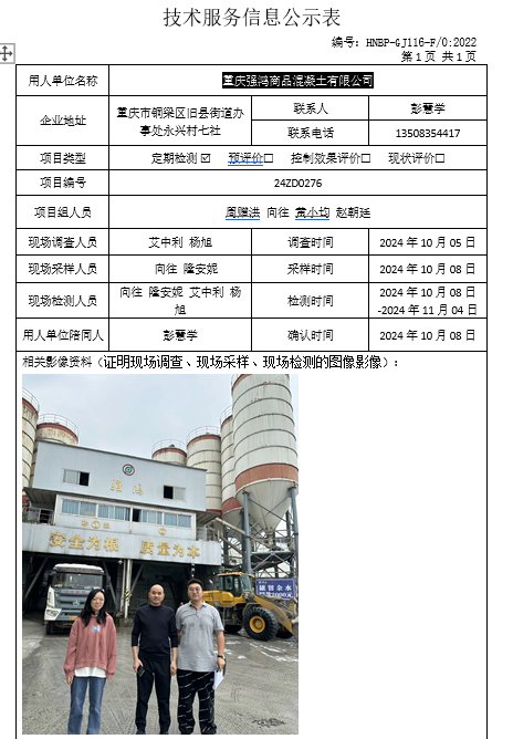 重慶強鴻商品混凝土有限公司定期檢測項目公示