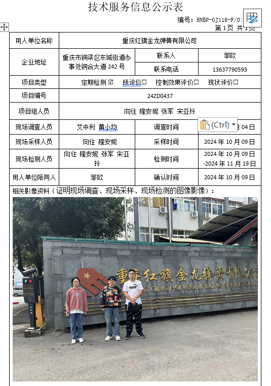 重慶紅旗金龍彈簧有限公司定期檢測(cè)項(xiàng)目公示