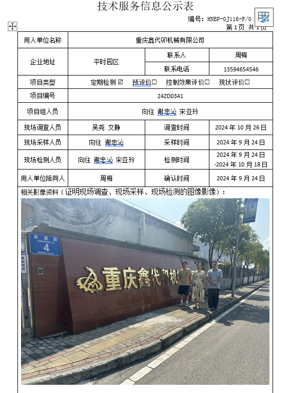 重慶鑫代卯機(jī)械有限公司定期檢測(cè)項(xiàng)目公示