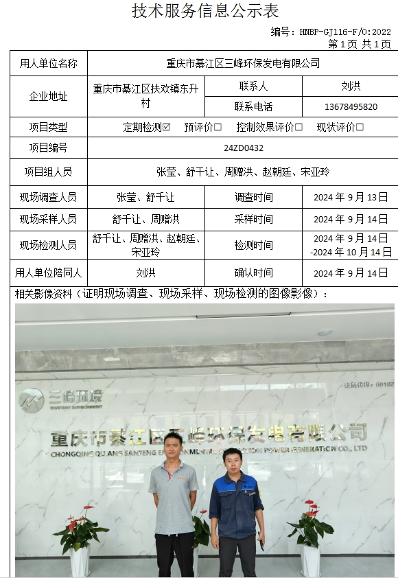 重慶市綦江區(qū)三峰環(huán)保發(fā)電有限公司定期檢測項目公示
