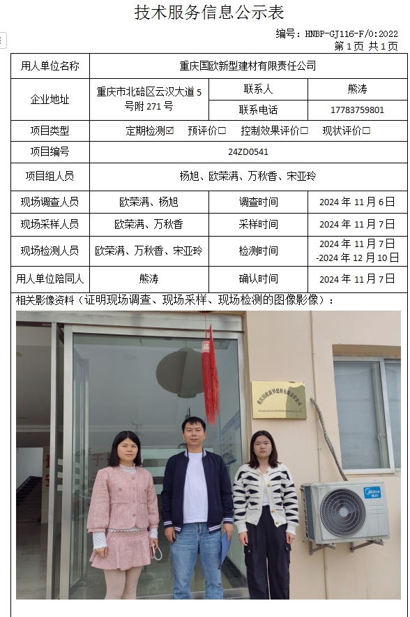 重慶國歐新型建材有限責(zé)任公司定期檢測項目公示