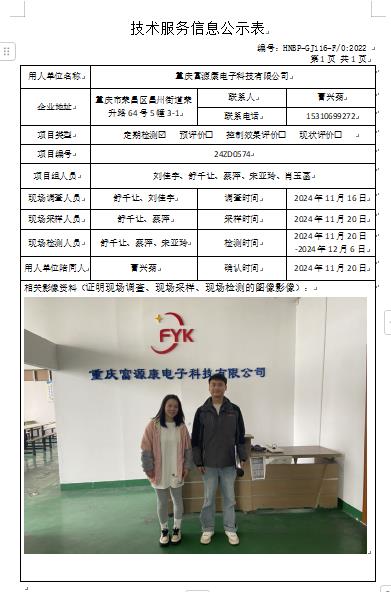 重慶富源康電子科技有限公司定期檢測(cè)項(xiàng)目公示