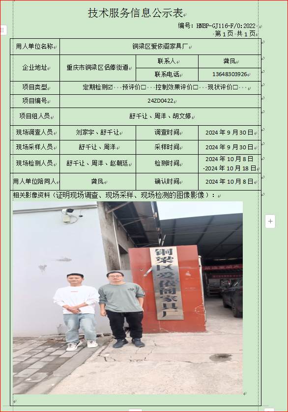 重慶澤田汽車部件有限責(zé)任公司定期檢測(cè)項(xiàng)目...