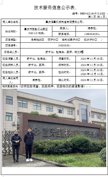 重慶恒重機(jī)械制造有限責(zé)任公司定期檢測項目公示