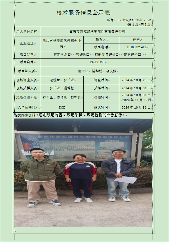 重慶市雙雄汽車配件有限責(zé)任公司定期檢測項...
