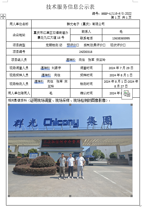 群光電子(重慶)有限公司定期檢測項(xiàng)目公示