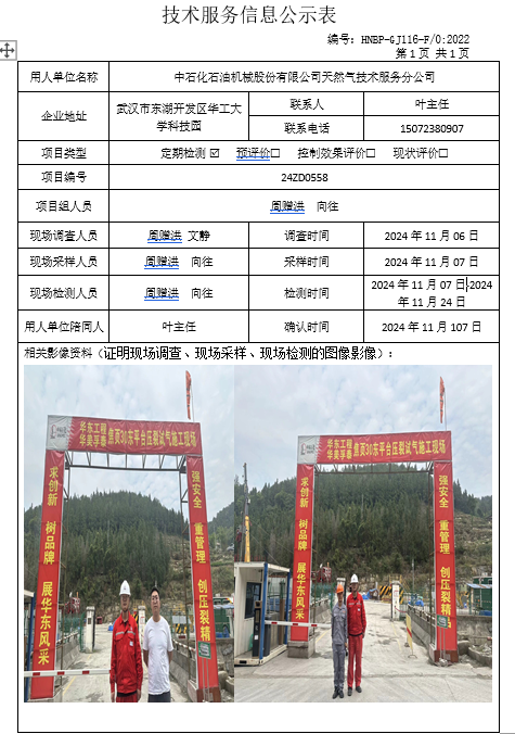 中石化石油機(jī)械股份有限公司天然氣技術(shù)服務(wù)分公司定期檢測項目公示