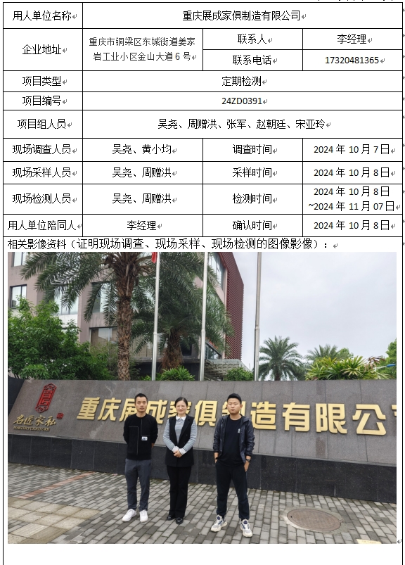 重慶展成家俱制造有限公司定期檢測(cè)報(bào)告