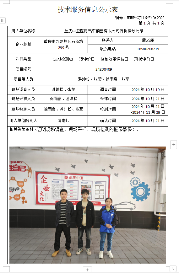 重慶仁星汽車服務(wù)有限公司定期檢測項(xiàng)目公示...