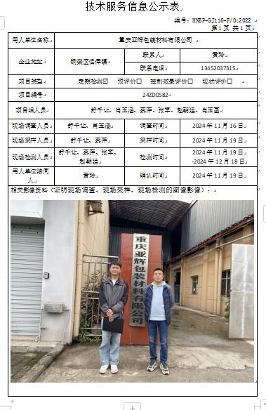 重慶亞輝包裝材料有限公司定期檢測(cè)項(xiàng)目公示