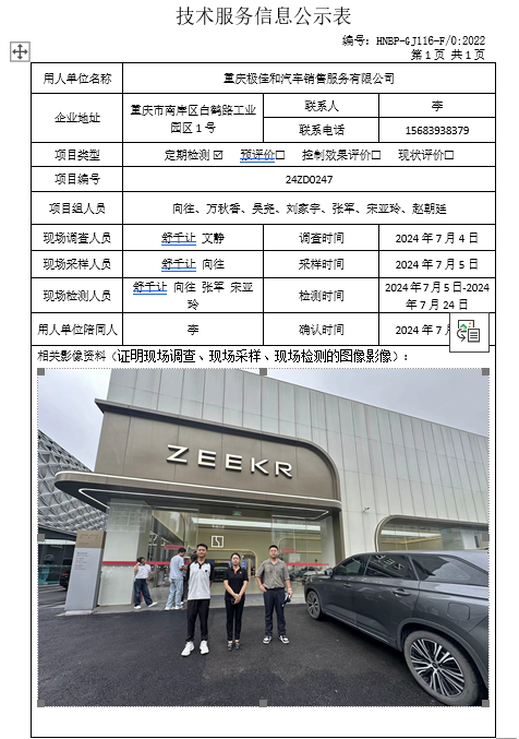 重慶極佳和汽車銷售服務有限公司定期檢測項目公示