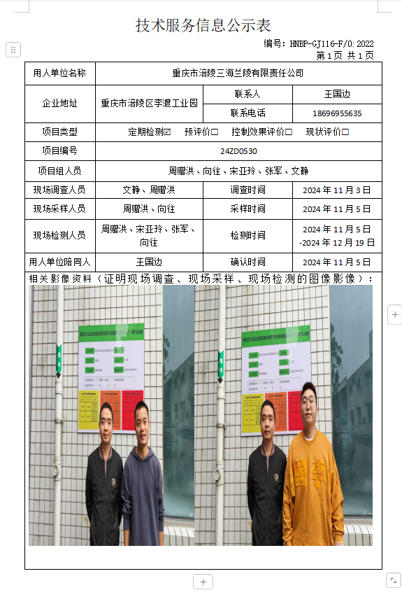 重慶市涪陵三海蘭陵有限責(zé)任公司定期檢測(cè)項(xiàng)目公示
